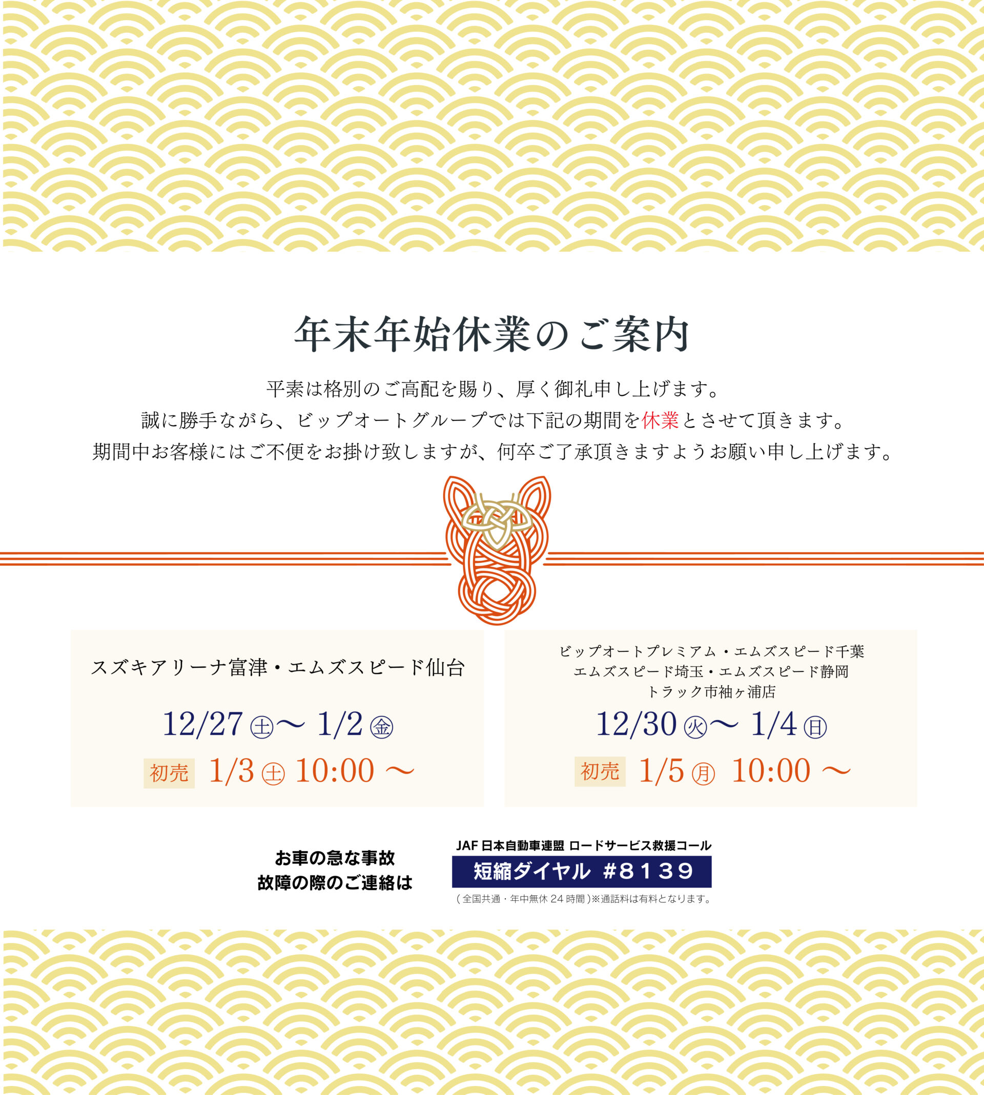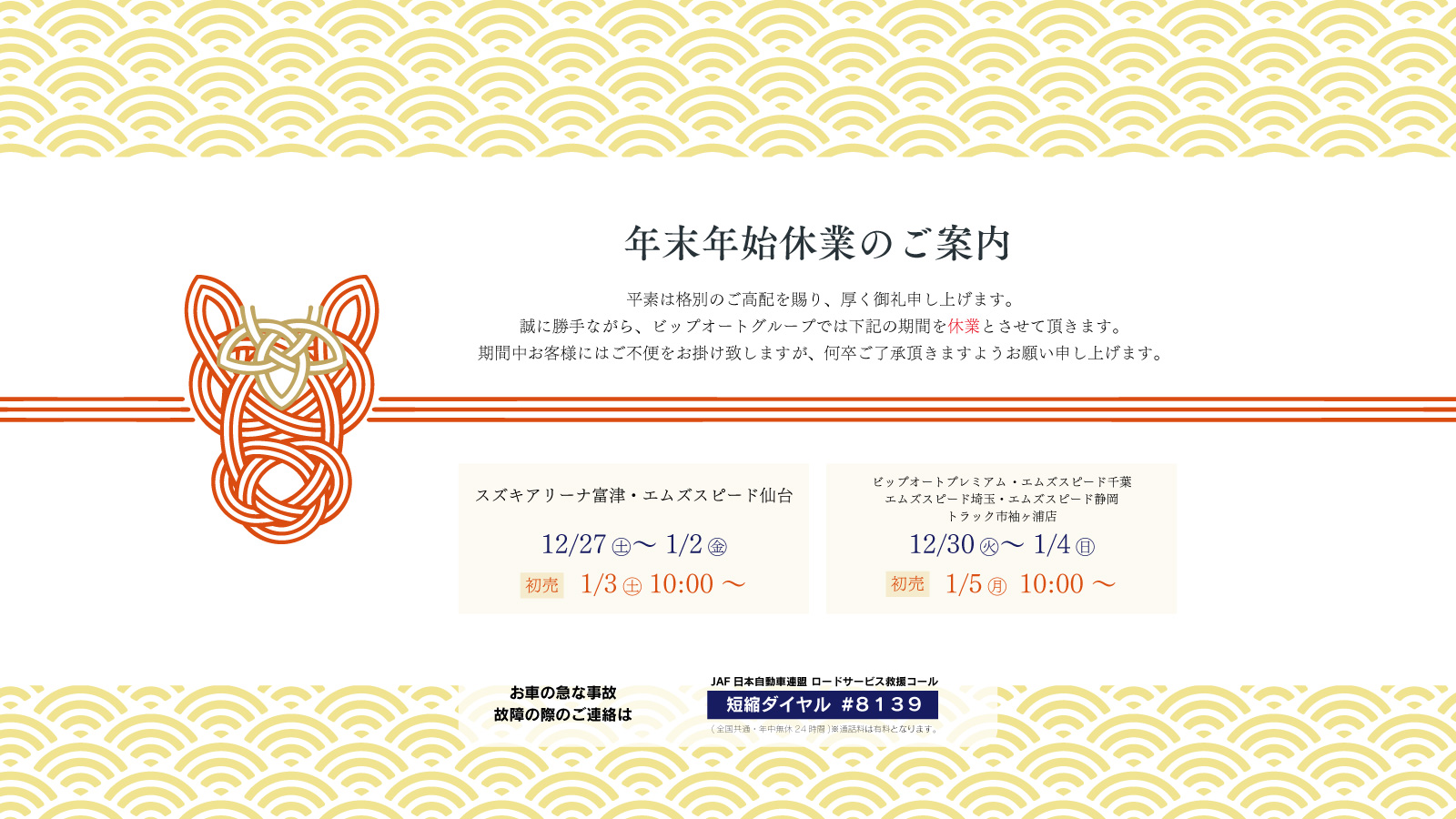 年末年始休業のご案内