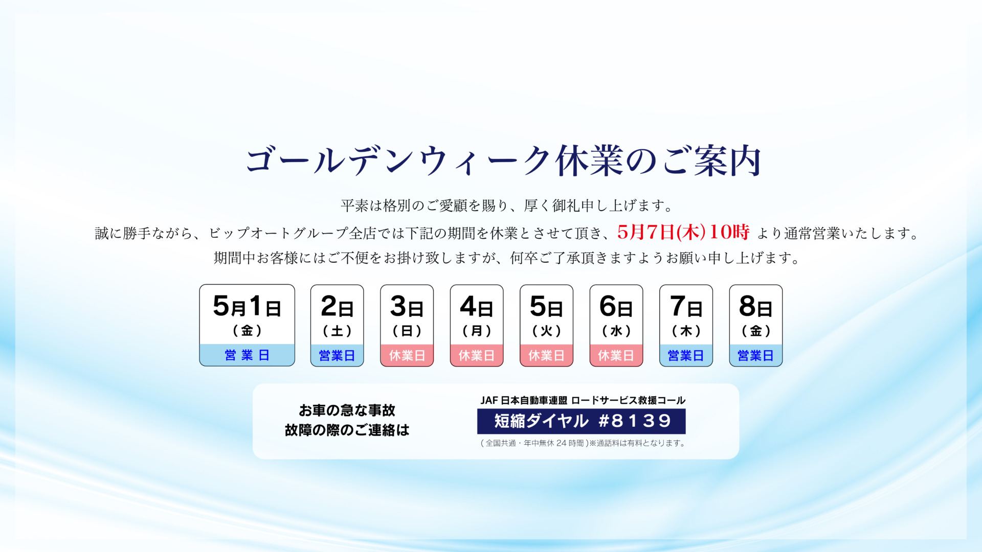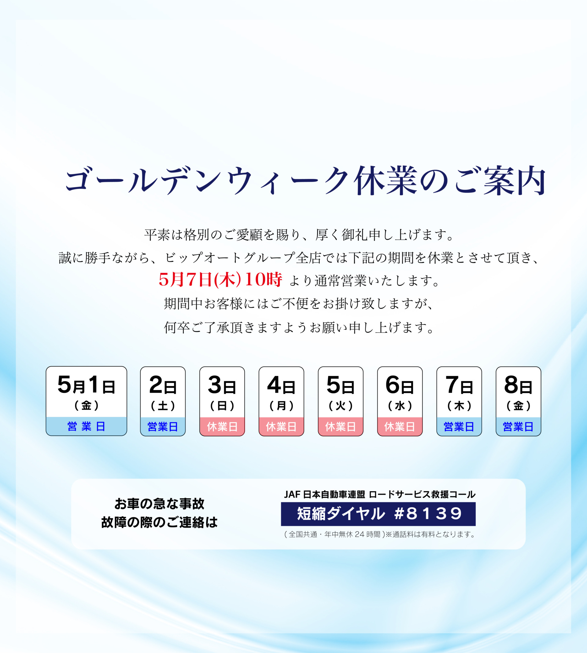 ゴールデンウィーク休業のご案内
