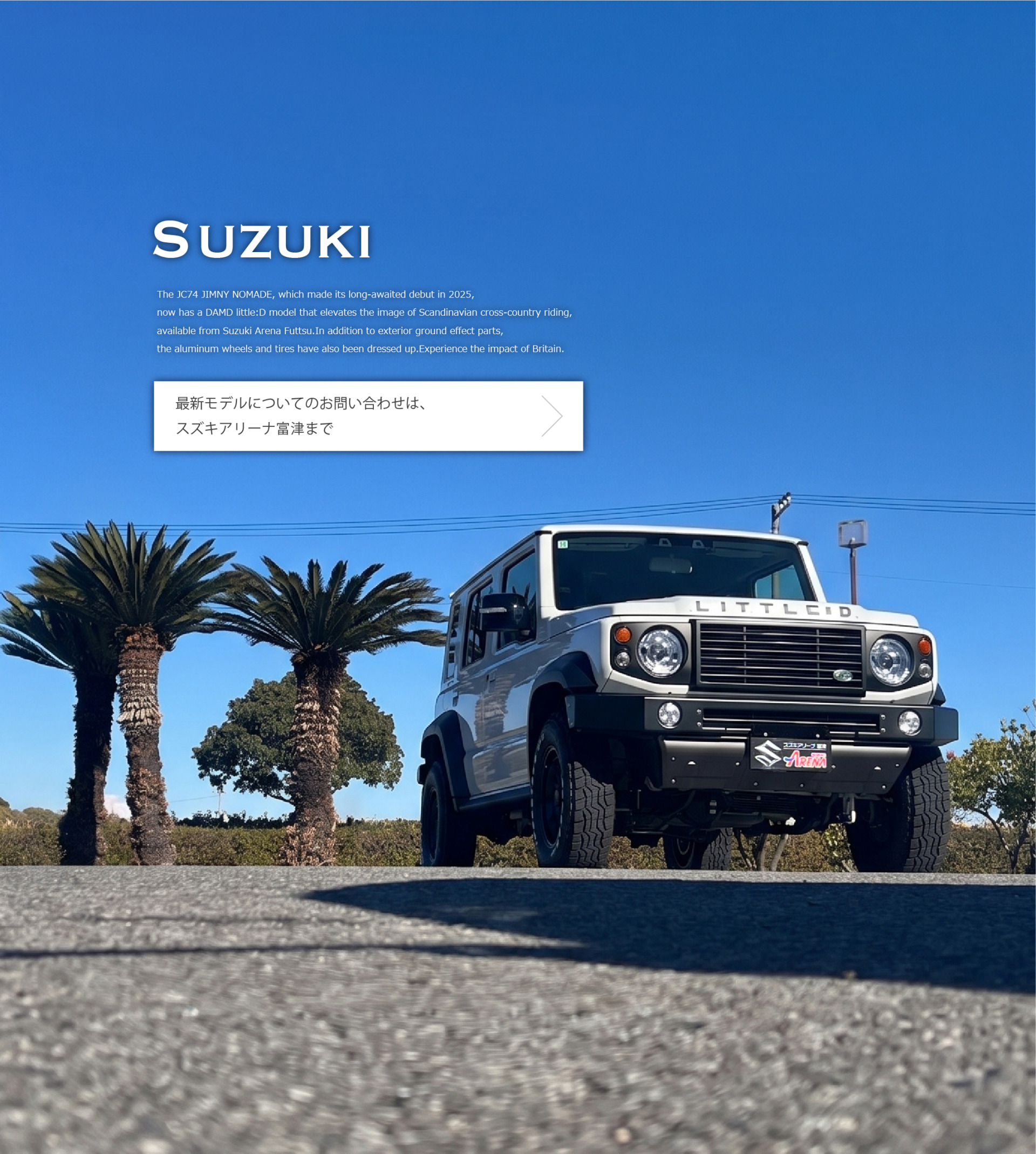DAMD × S.A.F. ≡ Jimny NOMADE little D. ≡ スクエアフォルムをより強調したデザインと 英国クロスカントリーな無骨で凛とした出で立ち。 往年の名車…
